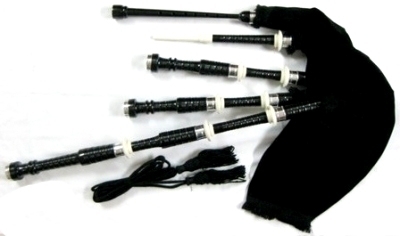 Black Wood Hand Sterling Silver Bagpipes